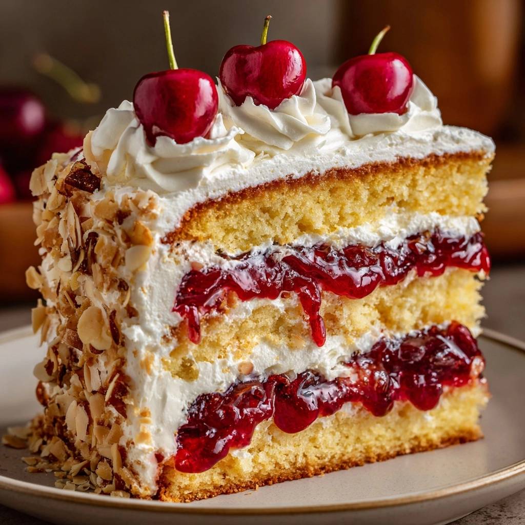 Duft von Vanille und gerösteten Nüssen füllt die Küche, die Kirschen bringen Sommer rein. Jeder Bissen balanciert süß, säuerlich, cremig und knackig. Ideal für Feiern oder einfach so, weil du’s dir gönnst.