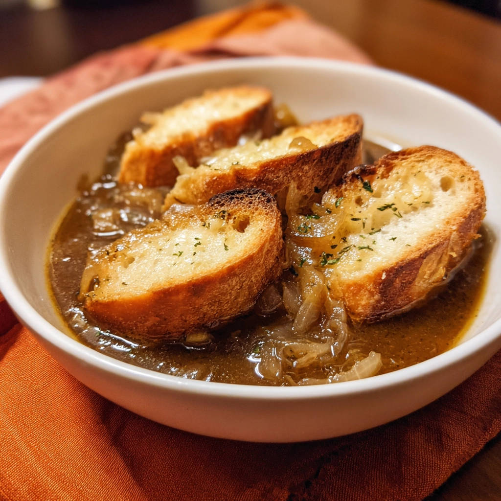 - Der ultimative Käse-Deckel: Das überbackene Baguette mit geschmolzenem Käse ist das i-Tüpfelchen, die perfekte Krönung für diese herrliche Suppe.