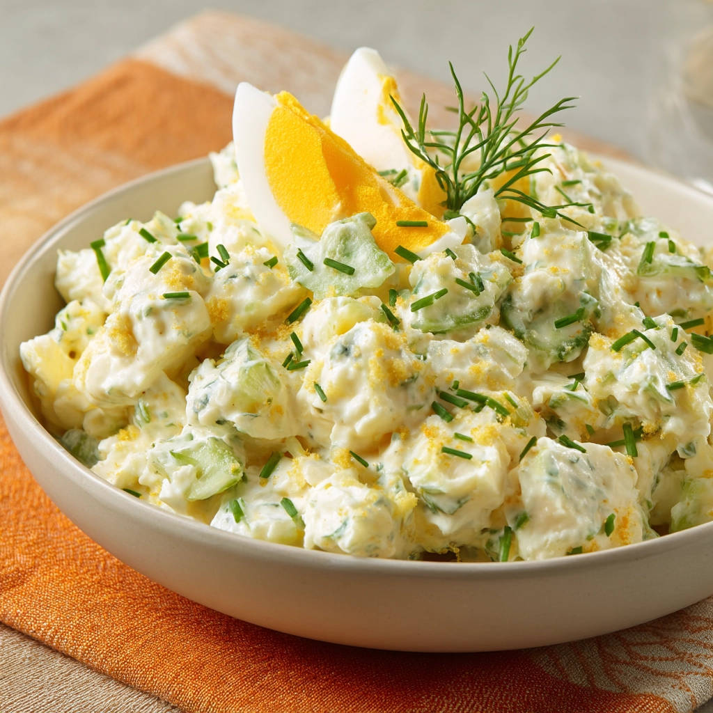 - Voller Geschmack: Die Kombination aus Mayonnaise, Joghurt oder saurer Sahne, Senf und Essig bildet ein ausgewogenes Dressing, das süß, sauer und leicht würzig ist. Die frischen Kräuter und die Zwiebel geben dem Salat die nötige Frische und den Biss.