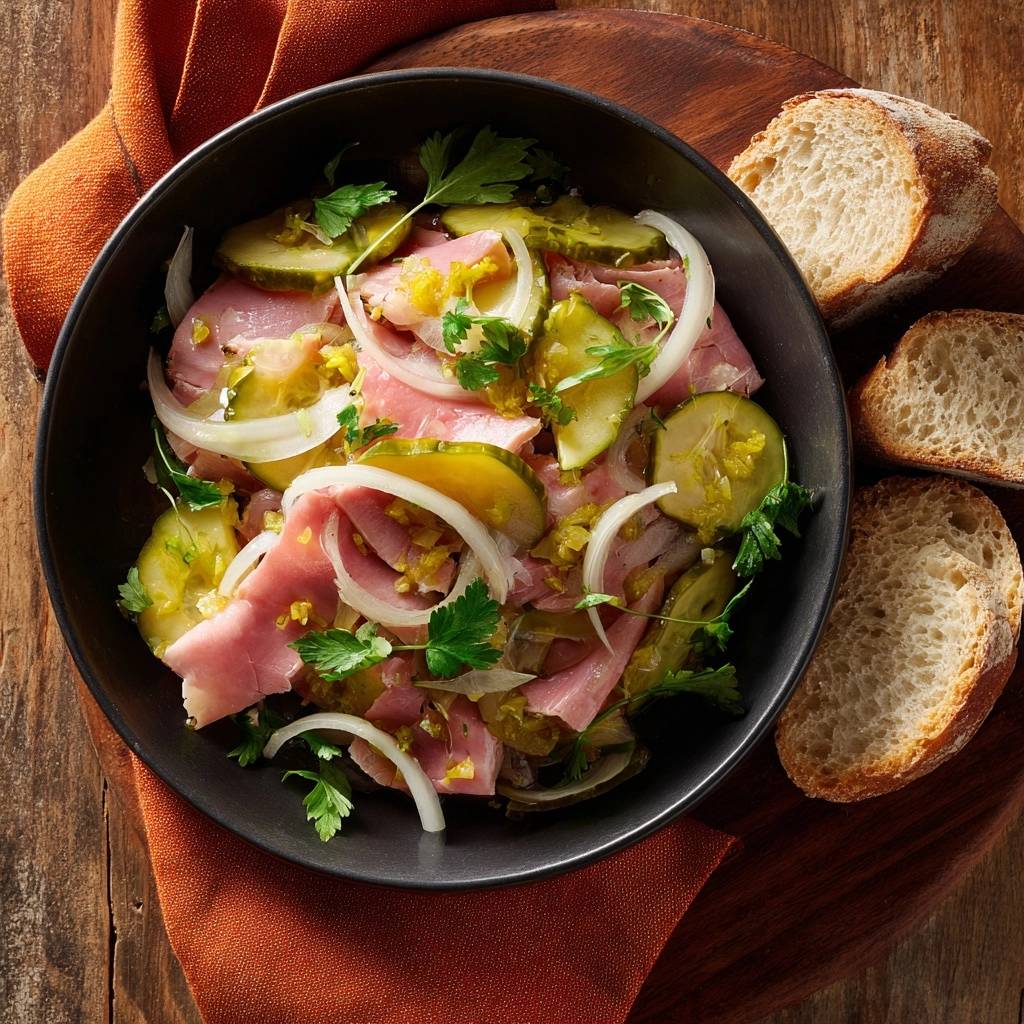 Wenn die Gabel in die Schüssel taucht und man diesen ersten, perfekt ausbalancierten Bissen aus würziger Wurst, knackiger Gurke und einer fein säuerlichen Marinade erwischt, weiß man: Das ist Heimat auf dem Teller. Ein klassischer Wurstsalat mit Essiggurken ist für mich der Inbegriff von ehrlicher, rustikaler Küche, die ohne viel Schnickschnack auskommt.