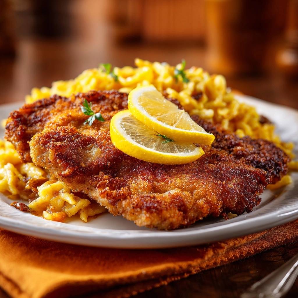 Klassisches Wiener Schnitzel mit Röstzwiebel-Spätzle