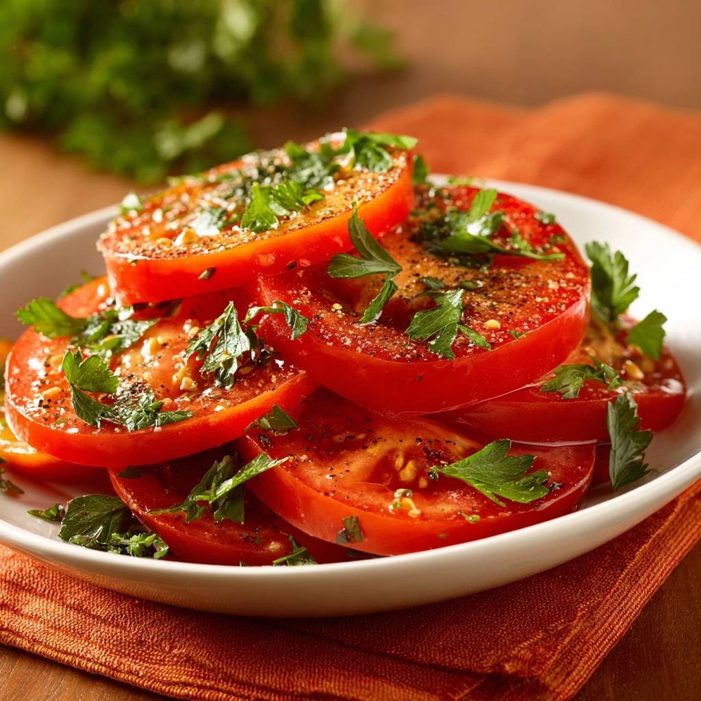 Probier es aus, und du wirst nie wieder wässrige Tomaten erleben. Diese knackigen Tomatenscheiben mit Petersilie passen zu allem Frischen vom Grill oder einfach zu Brot. Der Sommergeschmack pur, saftig und fest. Lass uns direkt zum Trick kommen.
