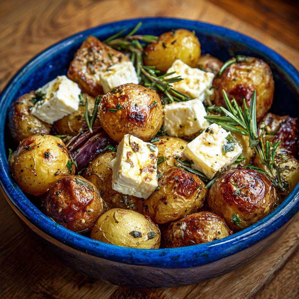 Stell dir vor, du nimmst die erste Babykartoffel in die Hand. Außen goldknusprig, fast wie ein Chip, innen fluffig und aromatisch. Der Duft von Rosmarin steigt auf, Feta bröckelt salzig darüber, und bei dem Biss knackt es herrlich.