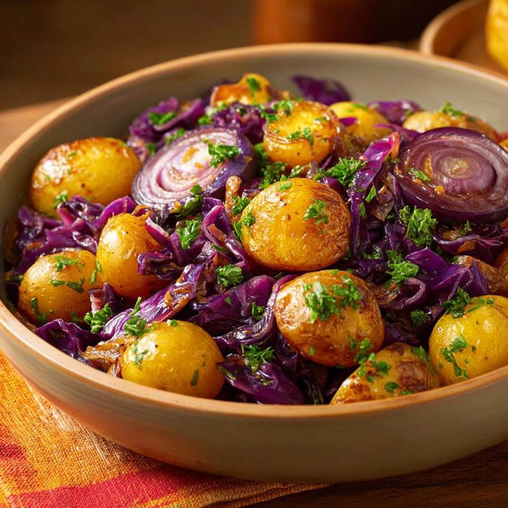 Stell dir vor, du spießt eine dieser kleinen Babykartoffeln auf, beißt rein und hörst dieses perfekte Knacken. Außen goldbraun knusprig, innen weich und saftig, nie matschig. Dazu der süßliche Rotkohl, der mit karamellisierten Zwiebeln tanzt, und frische Petersilie, die alles aufpeppt. Das ist mein Go-to-Gericht, wenn ich Lust auf was Einfaches habe, das süchtig macht.