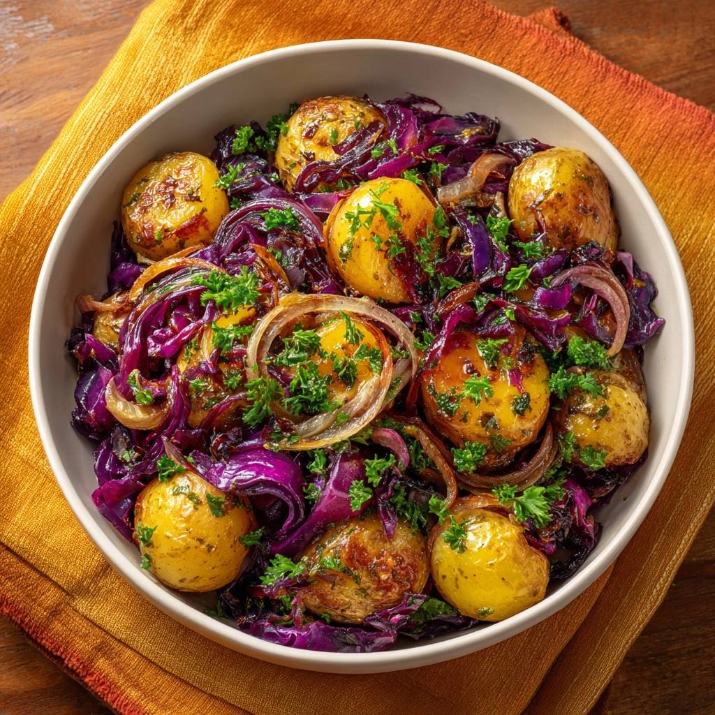 Knusprige Babykartoffeln mit Rotkohl und Zwiebeln (Nie wieder matschig!)