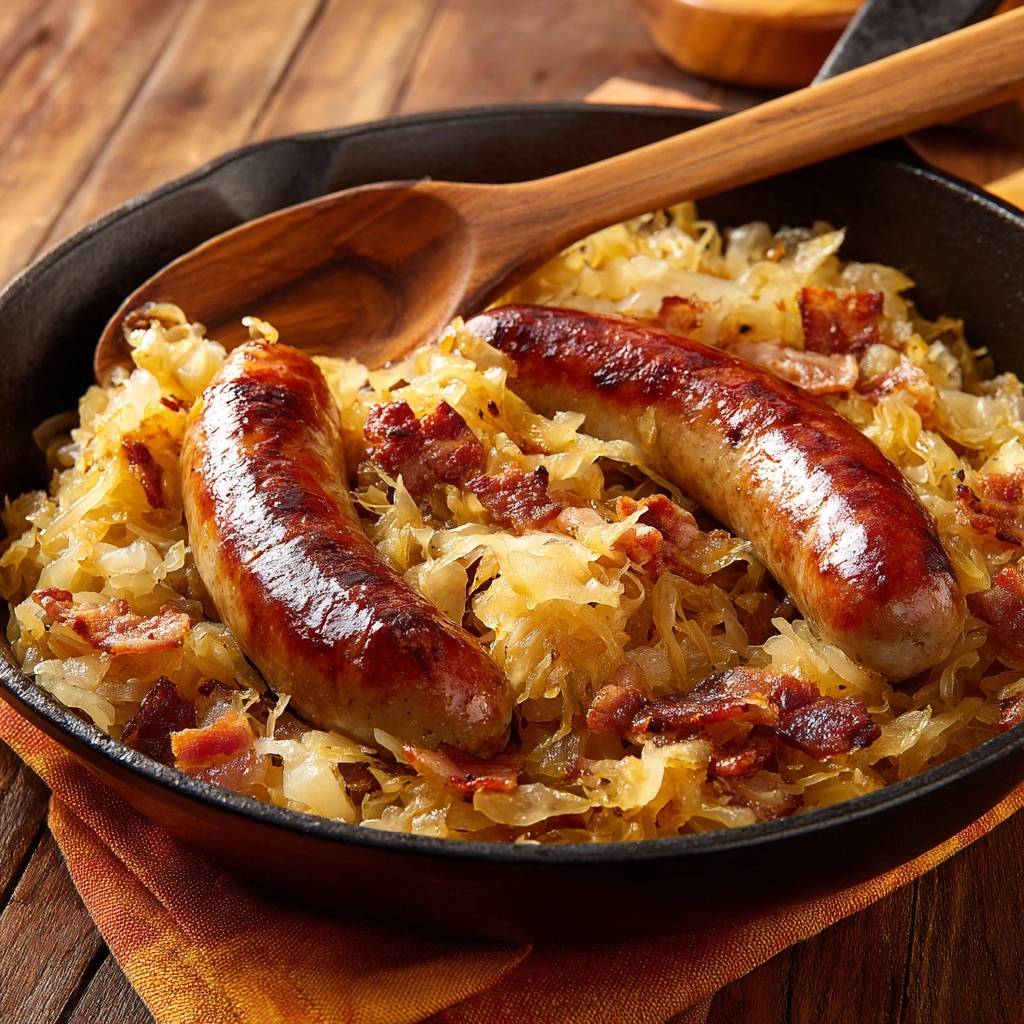Stell dir vor, du hebst den Deckel der Pfanne und ein Duft von karamellisiertem Kraut steigt auf, goldbraun und knackig. Der erste Bissen: Würstchen mit bissfester Haut, fluffiges Kraut, das nicht matschig zerfällt, und Kartoffeln mit knusprigen Ecken. Das ist pure Freude am Kochen, herzhaft und unkompliziert.