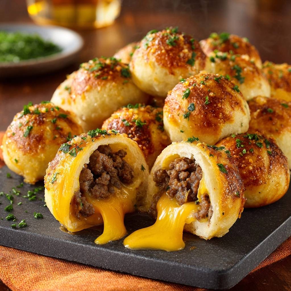 Diese Bällchen vereinen alles, was einen Cheeseburger ausmacht: saftiges Rindfleisch, schmelzenden Käse und Gewürze. Außen knusprig, innen weich und aromatisch.