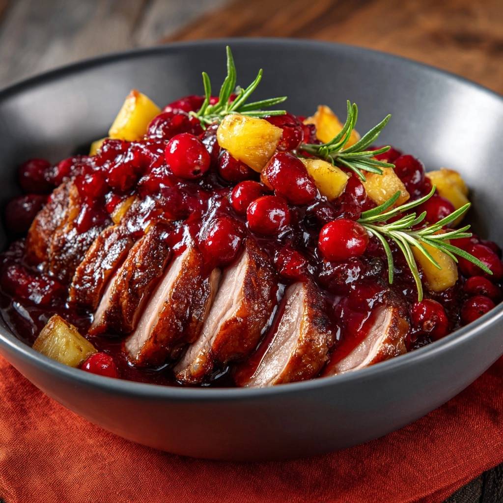 Du brauchst keine komplizierten Geräte. Nur eine gute Pfanne, ein Thermometer und 30 Minuten. Die Soße entsteht wie von Zauberhand in der Ente-Fett-Pfanne, saftig und aromatisch. Preiselbeeren platzen auf, Ananas bringt Süße, Rosmarin die Würze. Perfekt für kalte Abende oder wenn du beeindrucken willst.