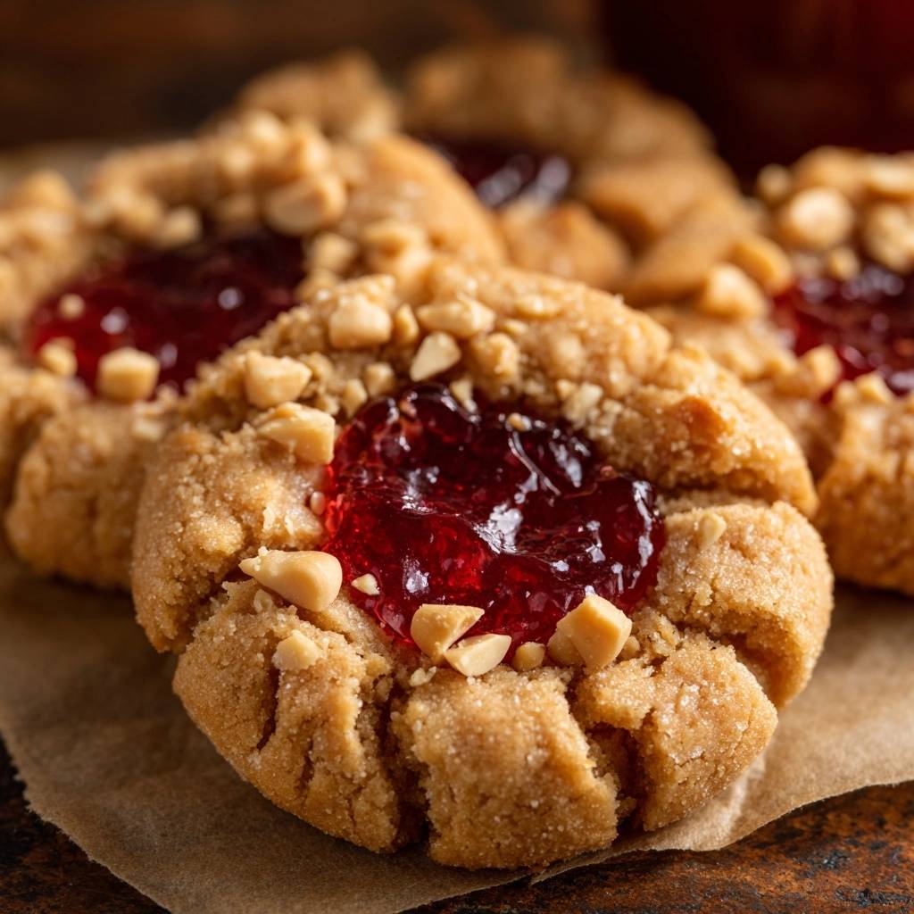Der Duft von gerösteten Erdnüssen zieht durch die Küche, und der erste Biss? Knusprig außen, weich innen, mit einem saftigen Schub roter Marmelade, die süß und fruchtig explodiert. Früher sind mir die Kekse immer platt geworden, total enttäuschend. Bis ich das einfache Trick gelernt habe: eine Kühlpause, die alles verändert.