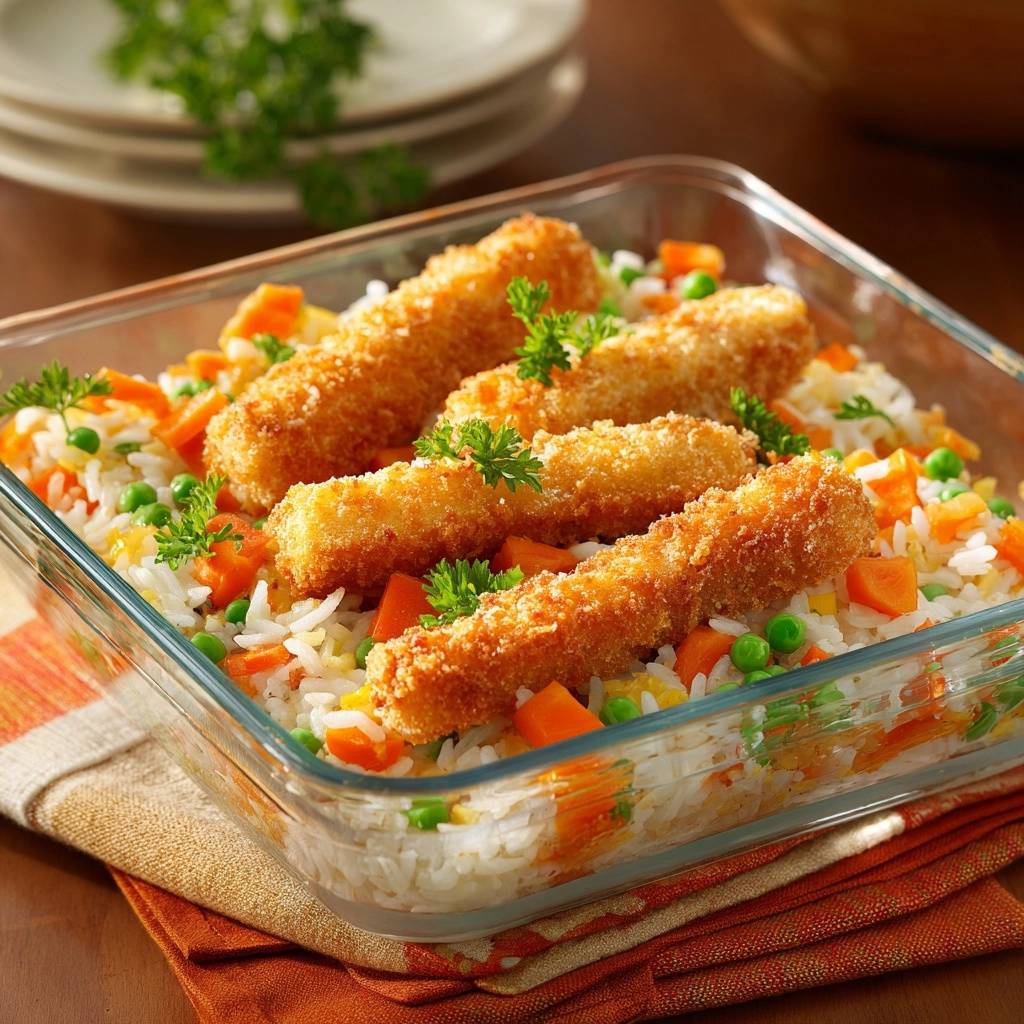 Warum dieses Rezept für knusprige Fischsticks mit Erbsen-Karotten-Reis unschlagbar ist
