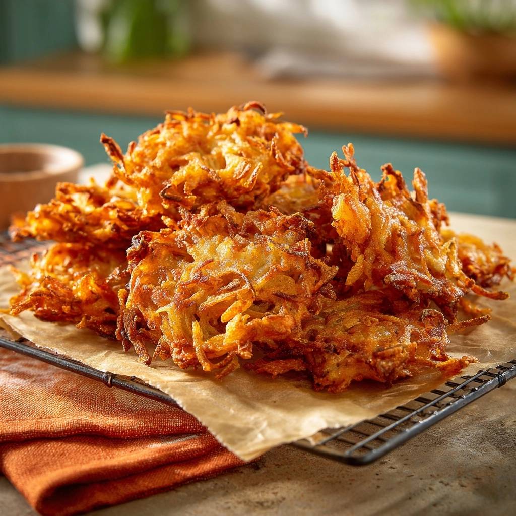 - Fertige Puffer auf einem Gitterrost mit Backpapier abtropfen lassen, damit sie knusprig bleiben. Heiß servieren, z. B. mit Apfelmus oder Quark. Guten Appetit – diese Puffer werden dein neuer Favorit!