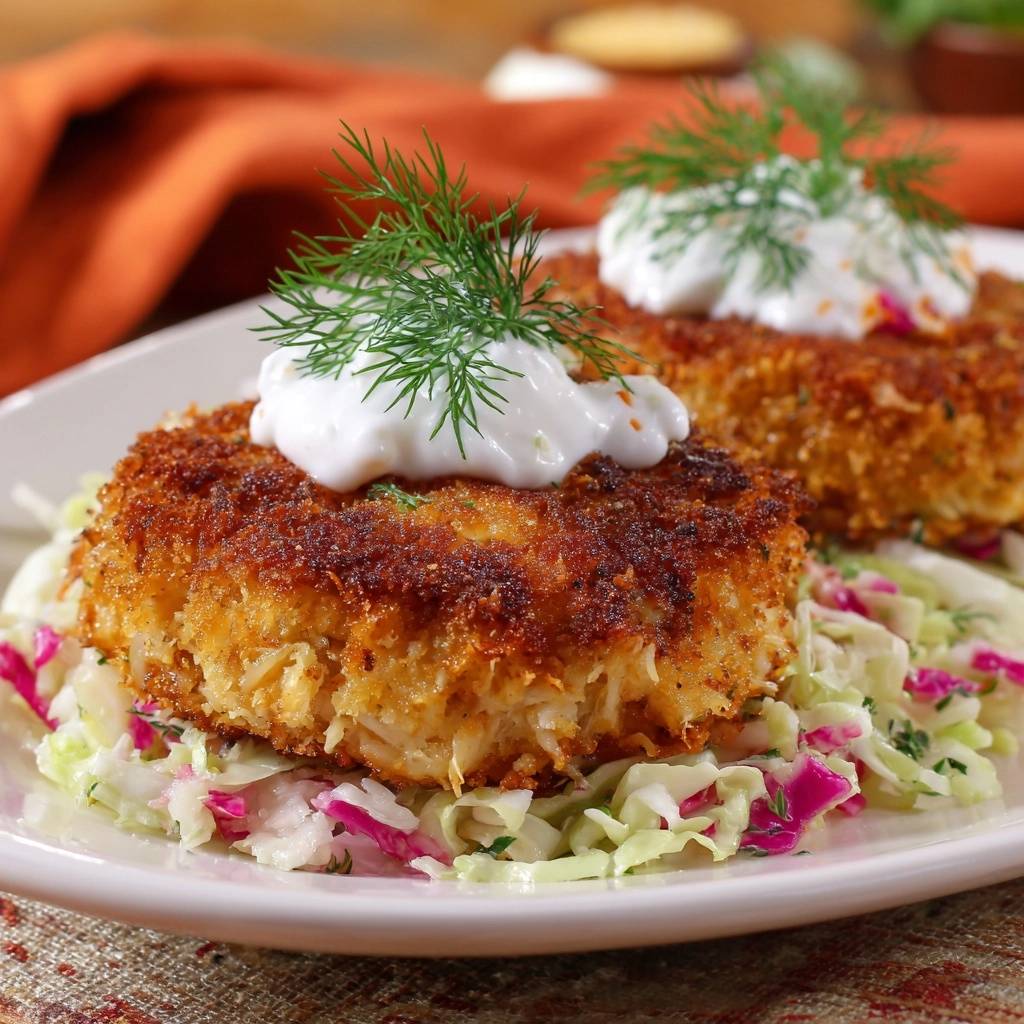 Stell dir vor, du beißt in einen Krabbenkuchen, und die Kruste knackt so herrlich, während das zarte Fleisch innen schmilzt. Der Dillduft steigt auf, frisch und würzig, und der knackige Coleslaw darunter bringt Frische rein. Ich hab das so oft hingekriegt, dass es mein Go-to-Rezept wurde.