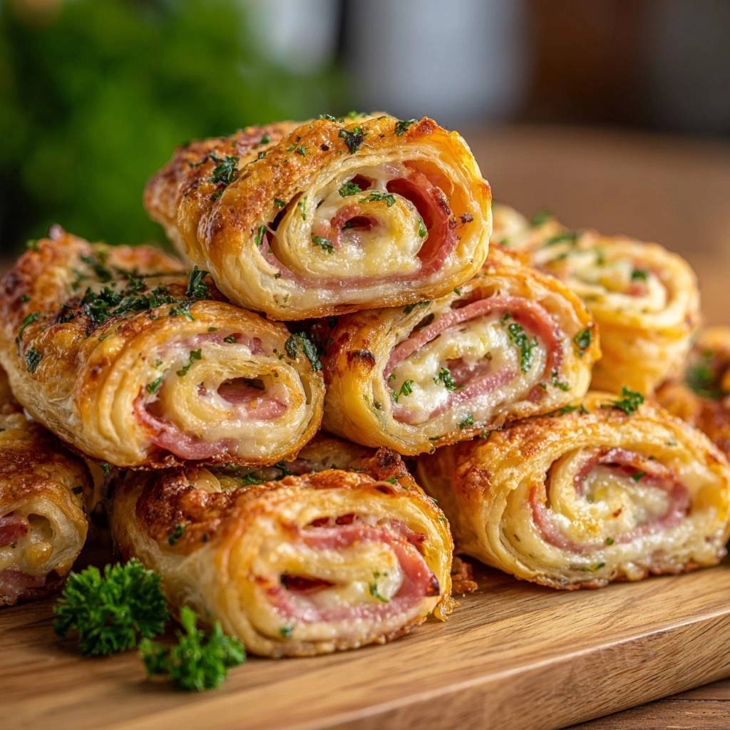 Stell dir vor, du beißt herzhaft in eine dieser goldbraunen Rollen. Draußen knackt der Blätterteig so herrlich knusprig, drinnen schmilzt milder Käse mit zarter Pute und frischer Petersilie zusammen. Der Duft von gebackenem Teig und würziger Füllung zieht durch die Küche und weckt sofort Appetit auf mehr.