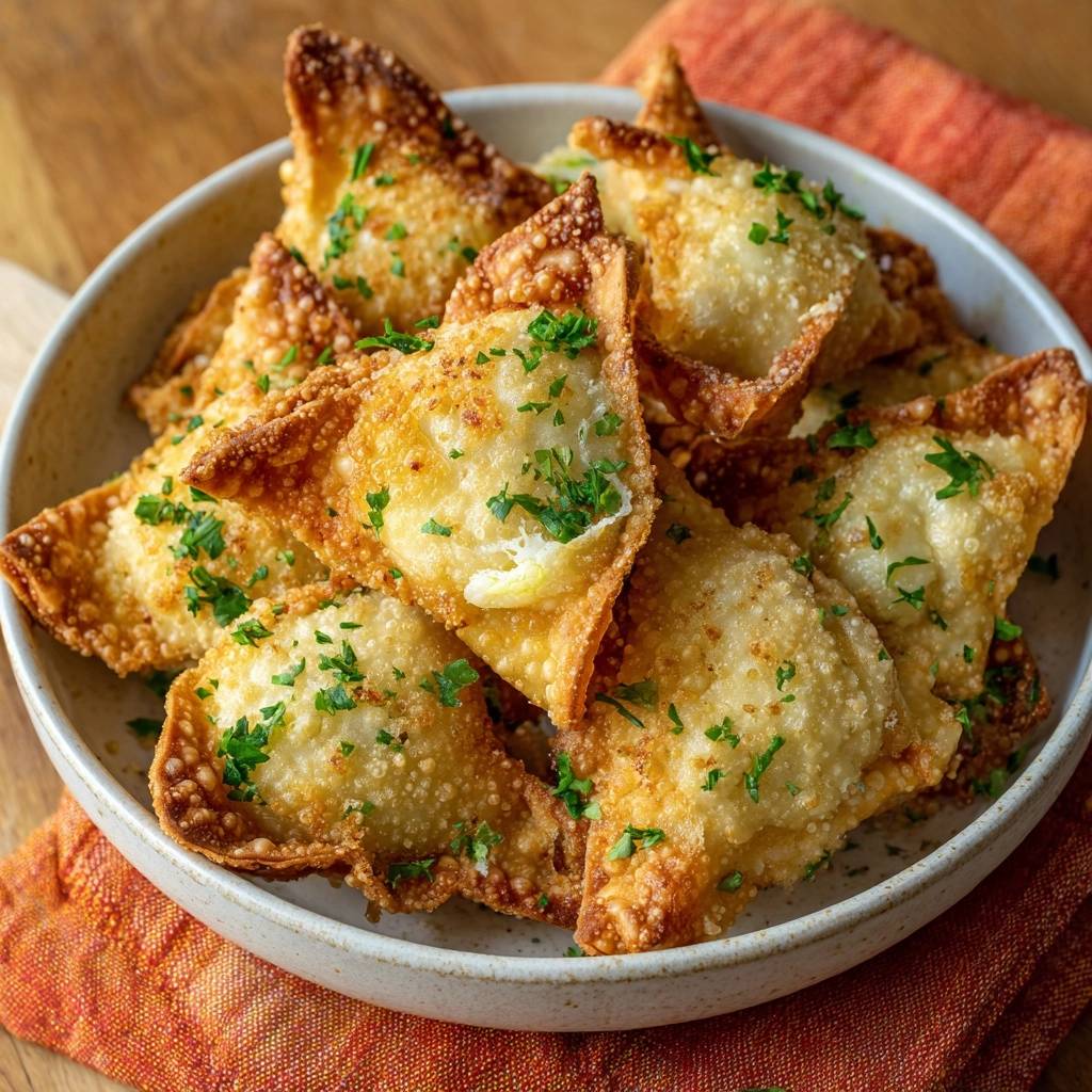 Der erste Biss knackt durch die goldene Hülle, und dann explodiert cremiger Ricotta mit frischer Petersilie im Mund. Du spürst die Knusprigkeit außen, die Saftigkeit innen. Diese Knusprige Ricotta-Wontons sind mein Go-to-Snack für spontane Abende.