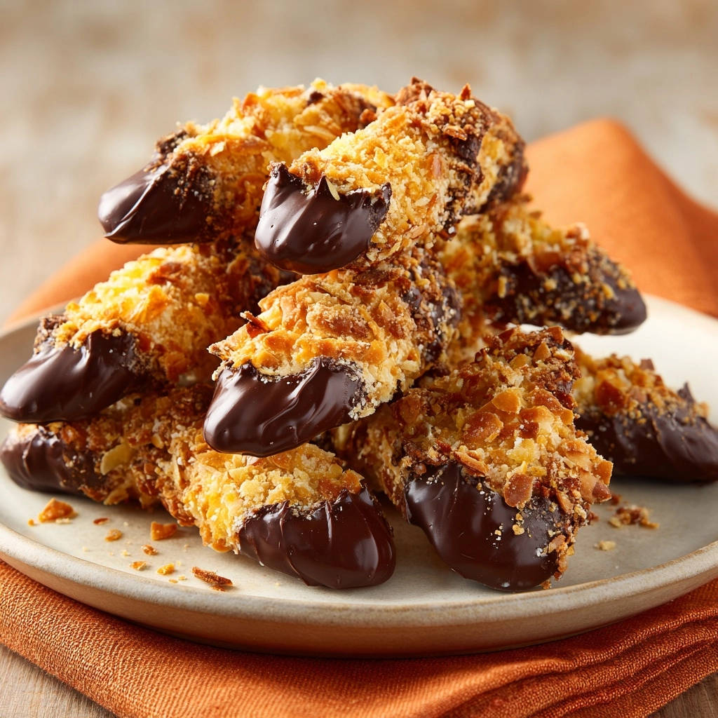 - Aushärten lassen: Lege die fertig dekorierten Kipferl auf ein mit Backpapier ausgelegtes Brett oder Blech. Stell sie für etwa 10-15 Minuten in den Kühlschrank. Durch die leichte Kühlung härtet die Schokolade schnell und perfekt fest aus, ohne klebrig zu bleiben oder ihren Glanz zu verlieren. Genieße deine perfekt festen Schoko-Nuss-Kipferl!