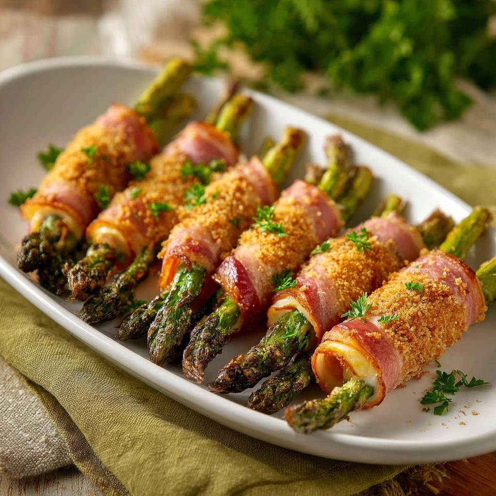 Stell dir vor, du beißt in ein Bündel Spargel und das Erste, was du hörst, ist dieses unvergleichliche Krachen einer perfekt goldbraunen Kruste. Dann folgt der salzige Geschmack von krossem Speck und ein Kern aus schmelzendem Käse, der alles zusammenhält.