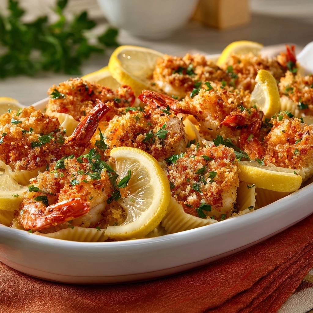 Das Rezept für knusprige Zitronen-Garnelen mit Conchiglie rettet jeden Pasta-Abend. Die Conchiglie fangen die Sauce ein, Garnelen bleiben saftig. Wissenschaftlich gesehen bildet Panko bei hoher Hitze eine Barriere, die Feuchtigkeit einschließt. Kein Wenden, portionsweise braten, und du hast perfekte Knusprigkeit.