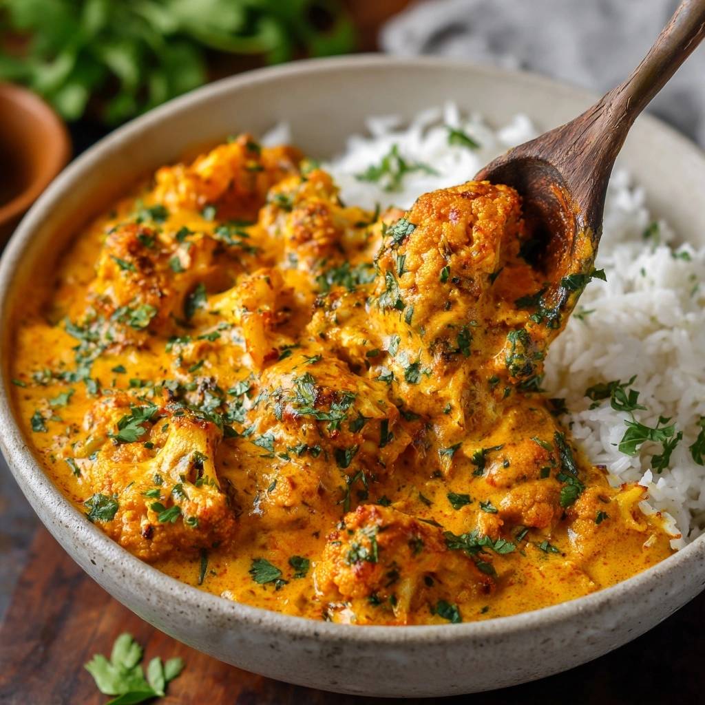 Stell dir vor, du nimmst die erste Gabel dieses knusprigen Blumenkohl-Currys mit Basmatireis. Der Blumenkohl knackt goldbraun zwischen den Zähnen, während cremige Kokosmilch und würzige Gewürze umhüllen. Kein Matsch mehr, nur pure Freude.