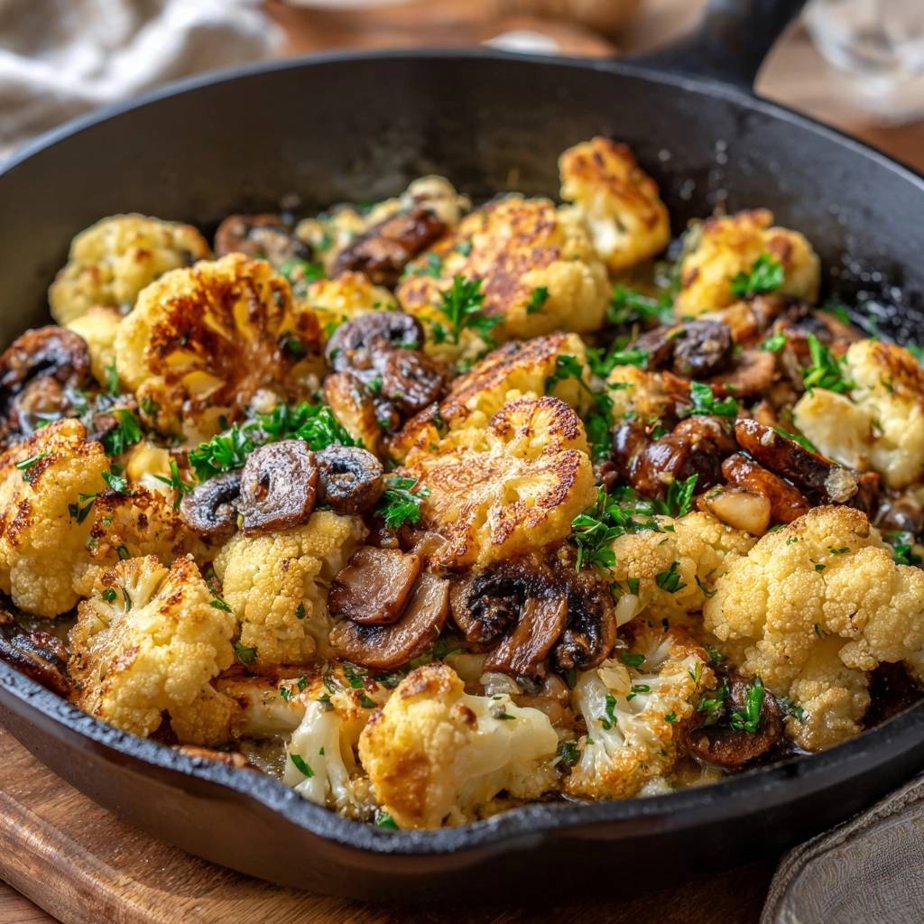 Der erste Bissen knuspert so herrlich, dass du fast nicht glauben kannst, wie einfach das war. Blumenkohl und Champignons, die sonst matschig werden, bleiben hier goldbraun und bissfest. Der Duft von gebratenem Gemüse erfüllt die Küche, und mit frischer Petersilie wirds perfekt abgerundet.