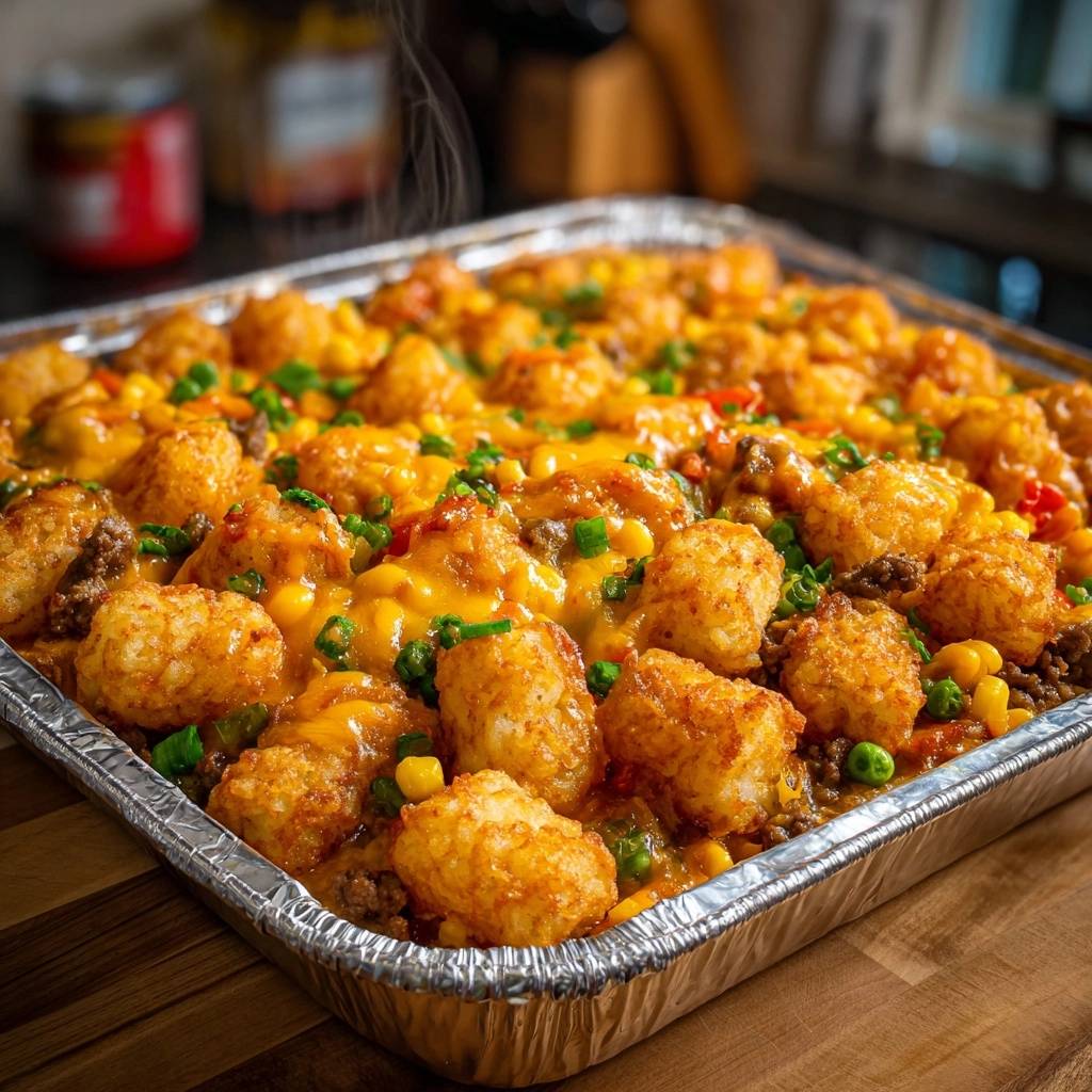 Stell dir vor, du beißt in diesen Auflauf rein: saftiges Hackfleisch, das mit knackigem Mais und Paprika explodiert, oben drauf goldbraune Tater Tots, die perfekt knusprig sind. Letzte Woche hab ich das für die Familie gemacht, und die Teller waren in Rekordzeit leer. Der Duft aus dem Ofen hat alle in die Küche gelockt.