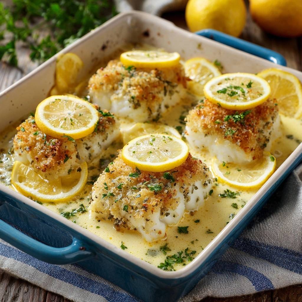 Knuspriger Zitronen-Kabeljau im Sahnebad – saftig & schnell