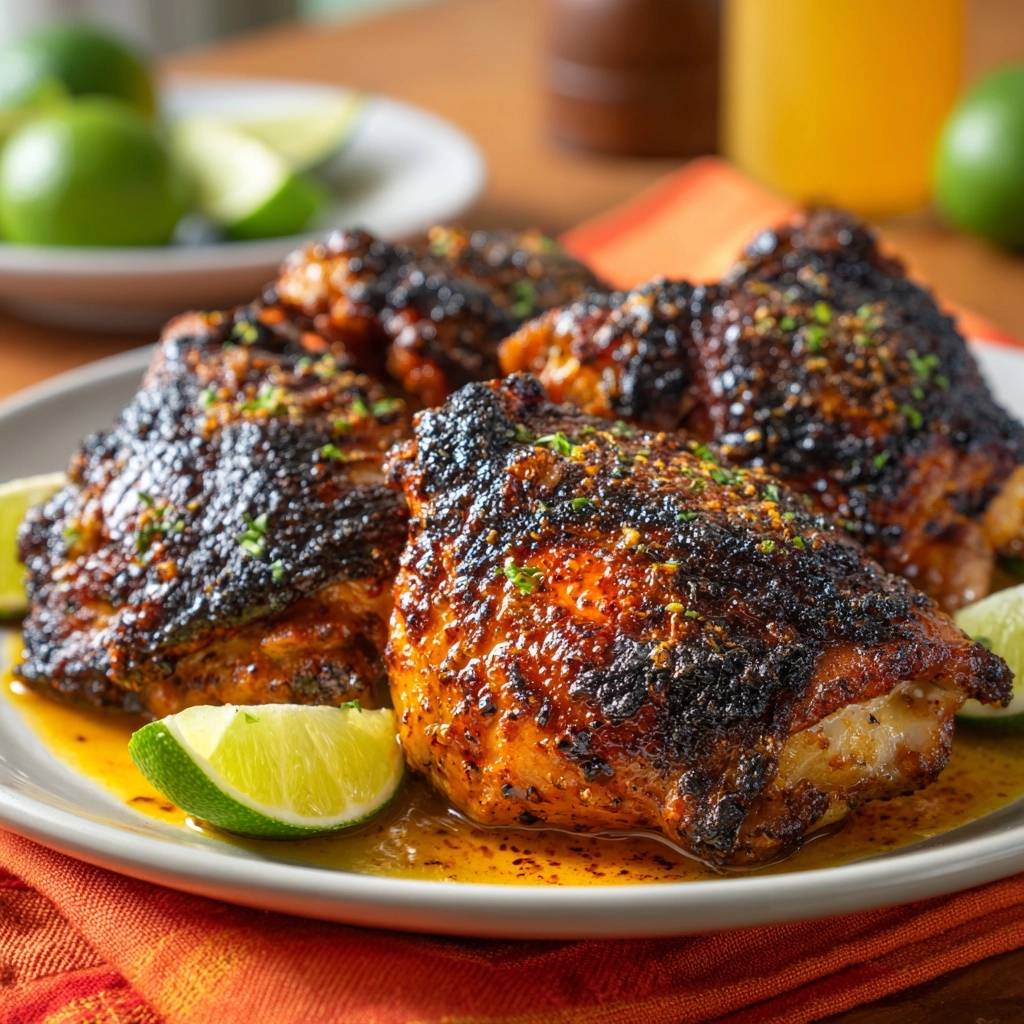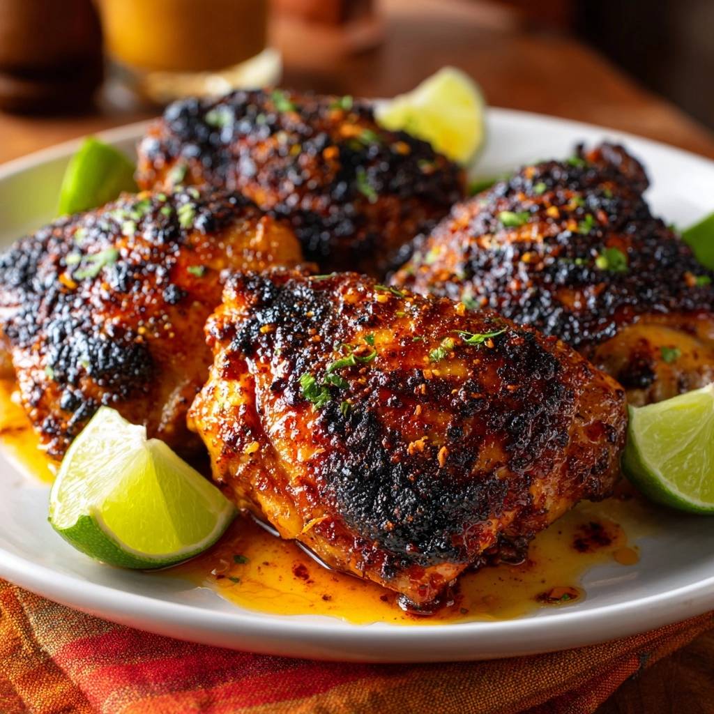 Hähnchenschenkel wähle mit Haut und Knochen: Sie halten Saft und machen knusprig. Limetten frisch pressen für echten Zitrus-Kick.