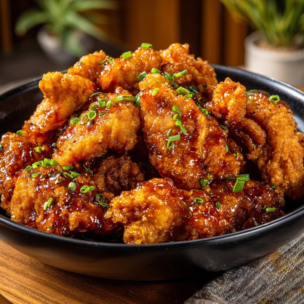Die Sauce ist dick und klebrig, aber die Panade bleibt knusprig. Warum? Weil Speisestärke und der Double-Fry-Trick eine Barriere bauen, die Feuchtigkeit abweist.