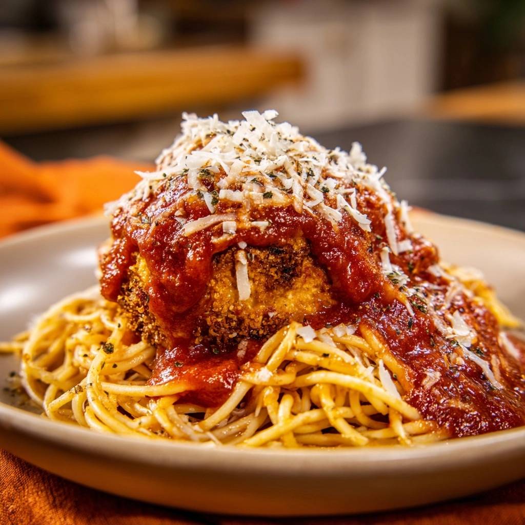 Der erste Biss in dieses knusprige Hähnchen auf Spaghetti, und du spürst es sofort: Die goldene Panade knackt herrlich, während die saftige Brust darunter schmilzt. Die Tomatensoße umhüllt alles warm und würzig, ohne die Knusprigkeit zu ruinieren. Du kennst das, oder? Dieses Gericht macht dich zum Koch-Star, einfach und schnell.