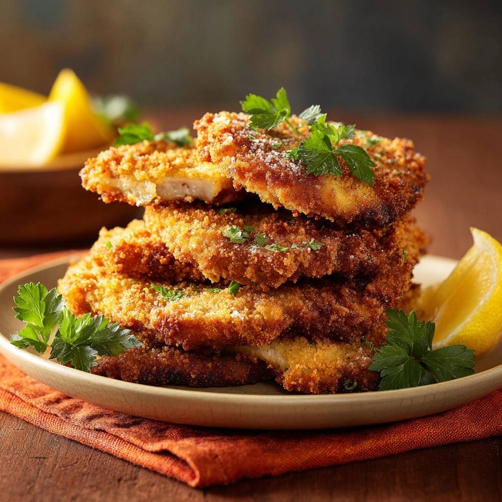 Perfekt: Mild gewürzt, Zitrone frisch. Kleinere Portionen klopfen. Mit Kartoffelpüree servieren. Allergiker-Tipp: Ei weglassen, nur Mehl-Paniermehl für knusprig.