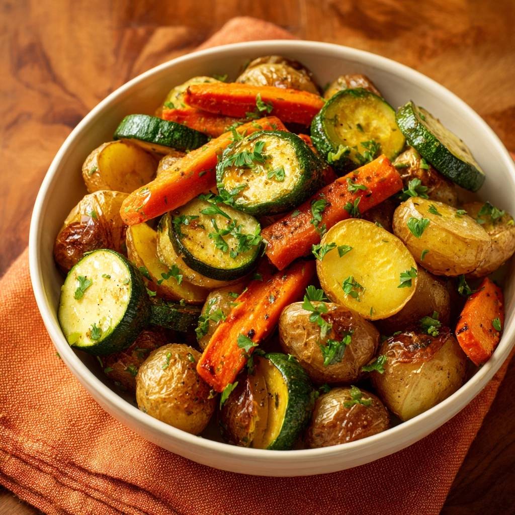 Stell dir vor, du beißt in ein Stück Kartoffel, das außen goldbraun knusprig knistert und innen weich schmilzt. Die Karotten geben süße Knackigkeit her, Zucchini saugt das Öl auf und wird herb-würzig. Der Duft von Paprika und Knoblauch zieht durch die Küche, macht richtig hungrig.