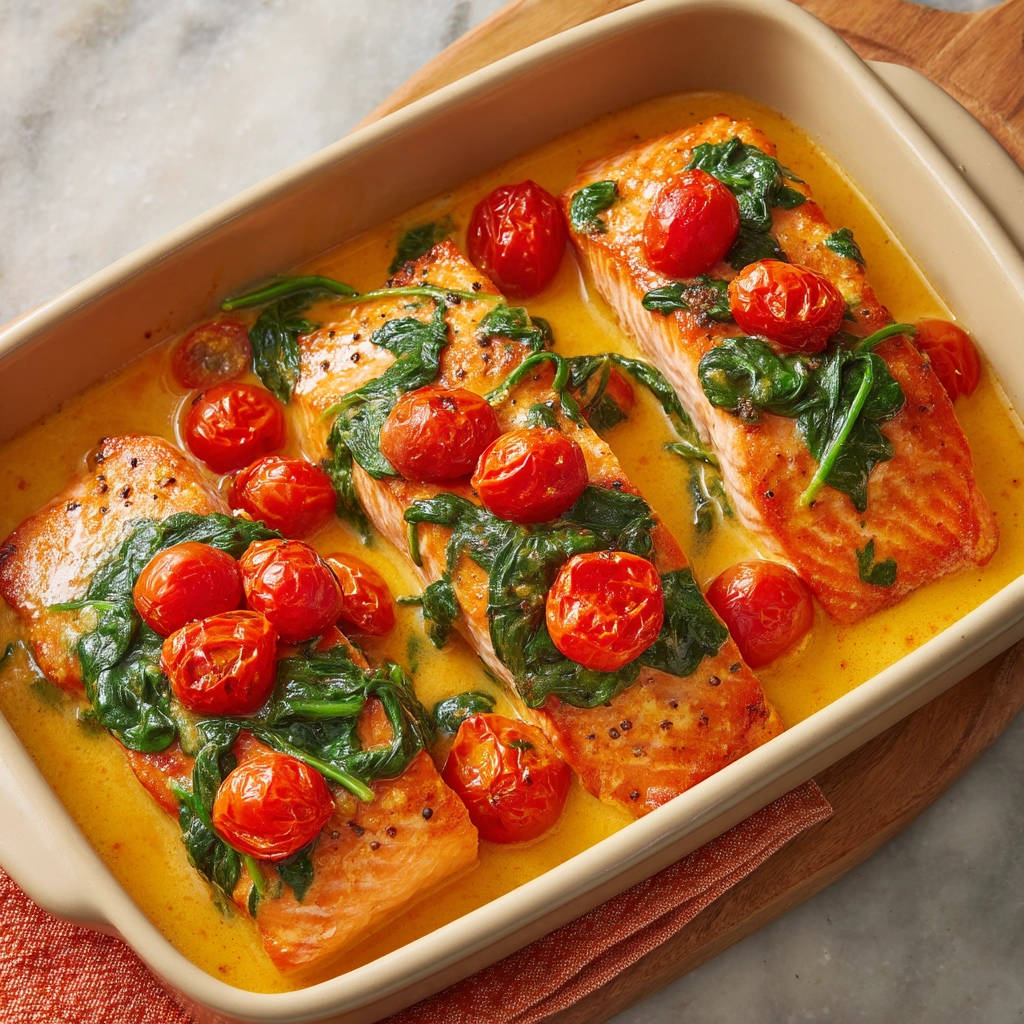 Lachs in Cremiger Spinat-Tomaten-Sauce