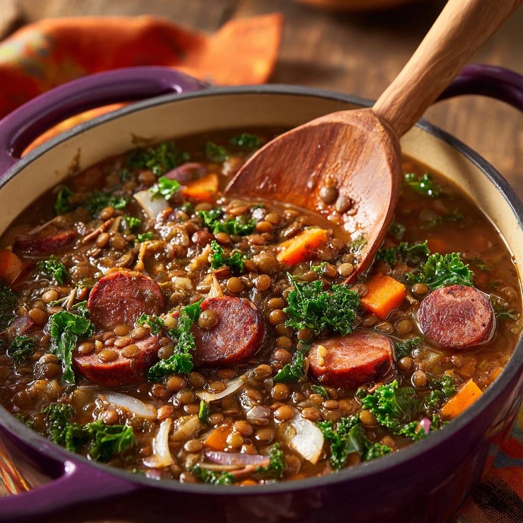 Stell dir vor, du tauchst den Löffel in eine Schüssel dampfenden Linseneintopfs mit Grünkohl und Wurst. Die Linsen sind cremig-weich, aber beißen noch leicht durch. Der Grünkohl bringt knackige Frische, die Wurst rauchigen Geschmack. Ein Bissen, und du spürst pure Wärme im Bauch.