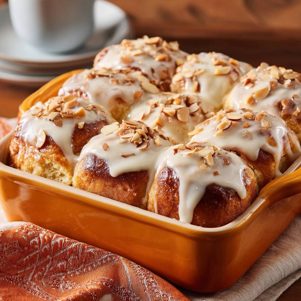 Stell dir vor, du beißt in eine Mandel-Zimtschnecke, die sich warm und weich in deinem Mund auflöst. Der Zimtduft steigt auf, klebriger Guss tropft runter, und knusprige Mandeln knacken dazwischen. Diese Pull-Apart-Variante aus der Form ist pure Wärme pur, perfekt zum Teilen mit Freunden.