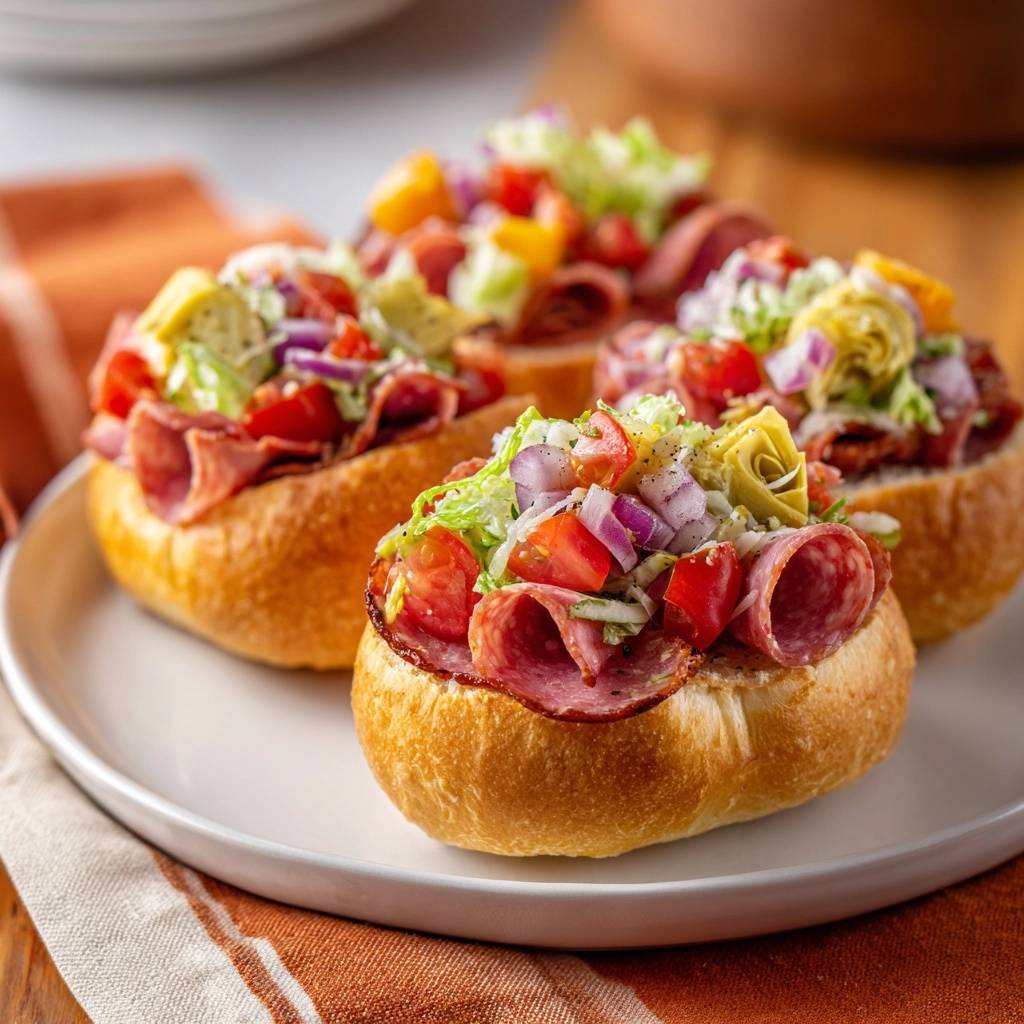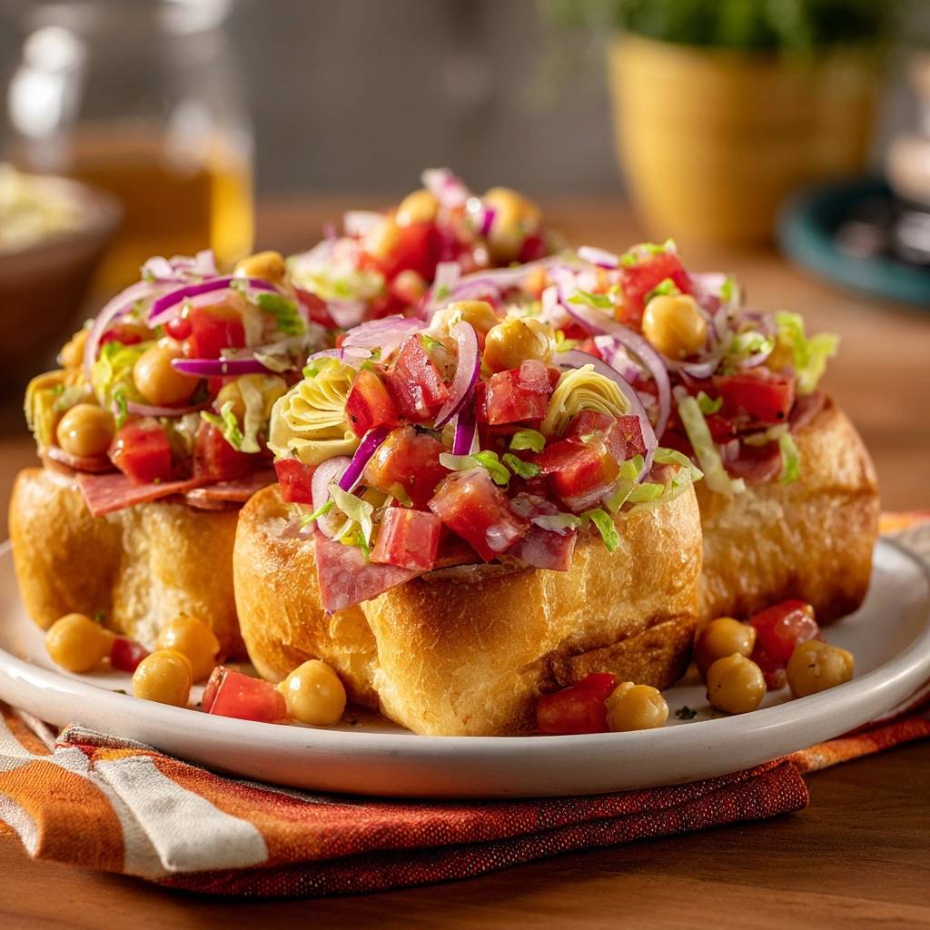 Der erste Biss in diese Mediterrane Salami-Salat-Brötchen ist pure Freude. Draußen knusprig, drinnen eine frische Mischung aus knackigen Tomaten, cremigen Kichererbsen und würziger Salami, die perfekt mit Artischocken und Oliven harmoniert. Der Duft von gebratenem Brot und mediterranen Gewürzen steigt auf, und du spürst sofort, warum das dein neuer Favorit wird.