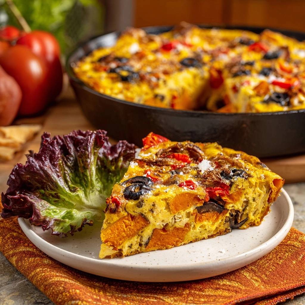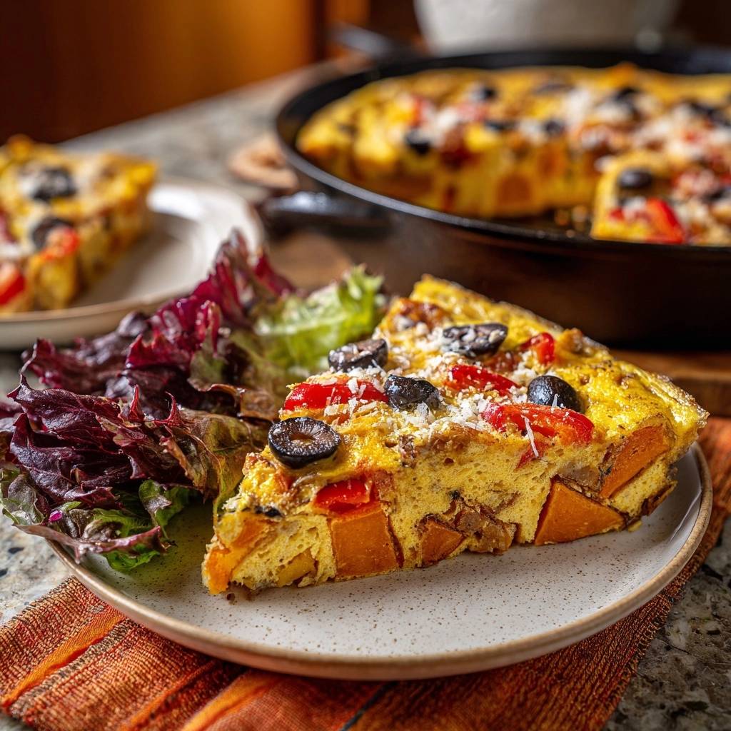 Stell dir vor, du schneidest durch eine goldgelbe Kruste in einen Kern, der so zart und luftig ist, dass er fast auf der Zunge schmilzt. Genau das erwartet dich bei dieser mediterranen Süßkartoffel-Frittata.