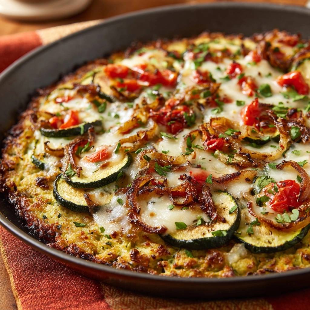 Während der Boden brät, schneidest du die restliche Zucchini in Scheiben und die Zwiebel in Ringe. Brate beides in einer zweiten Pfanne scharf an. So bekommen die Zwiebeln ihre Süße und die Zucchini Röstaromen, ohne den Boden aufzuweichen.