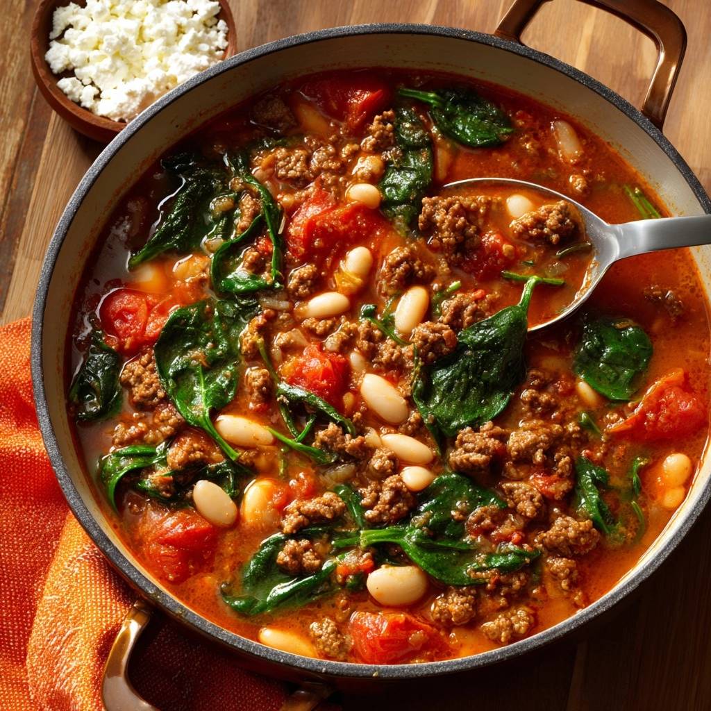 Mediterraner Hack-Spinat-Eintopf mit Bohnen & Feta
