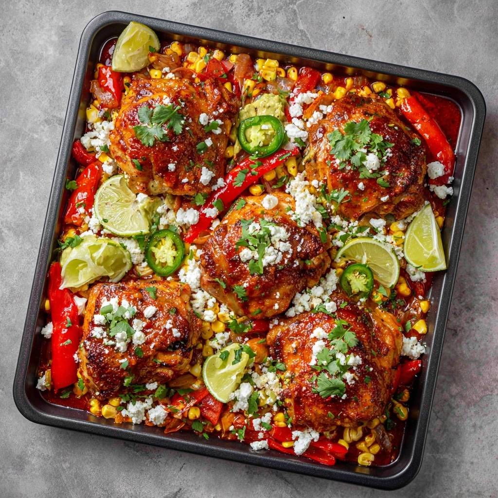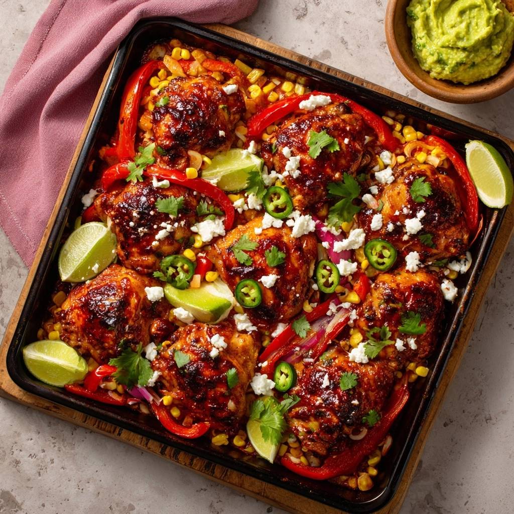 Mexikanisches Blechhähnchen mit Mais und Paprika: Saftig & Fix