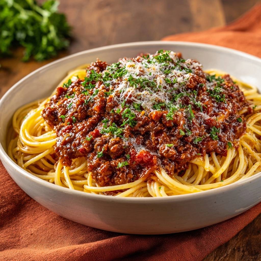 Stell dir vor, du twirlst diese Spaghetti um die Gabel, und die Sauce klebt perfekt dran, fleischig und intensiv, ohne einen Tropfen zu verschwenden. Der Duft von angebratenem Hack und Tomaten steigt auf, und beim ersten Bissen explodiert der Geschmack im Mund. Du wirst staunen, wie einfach das geht.