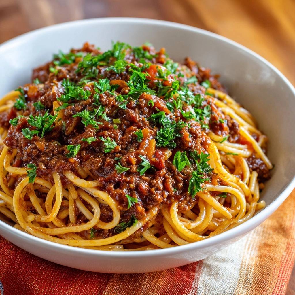 Stell dir vor, du twirlst diese Spaghetti auf deiner Gabel, und die Soße klebt perfekt daran. Dick, intensiv, mit diesem satten Fleischaroma, das im Mund explodiert. Kein Tropfen läuft ab, nur purer Genuss.