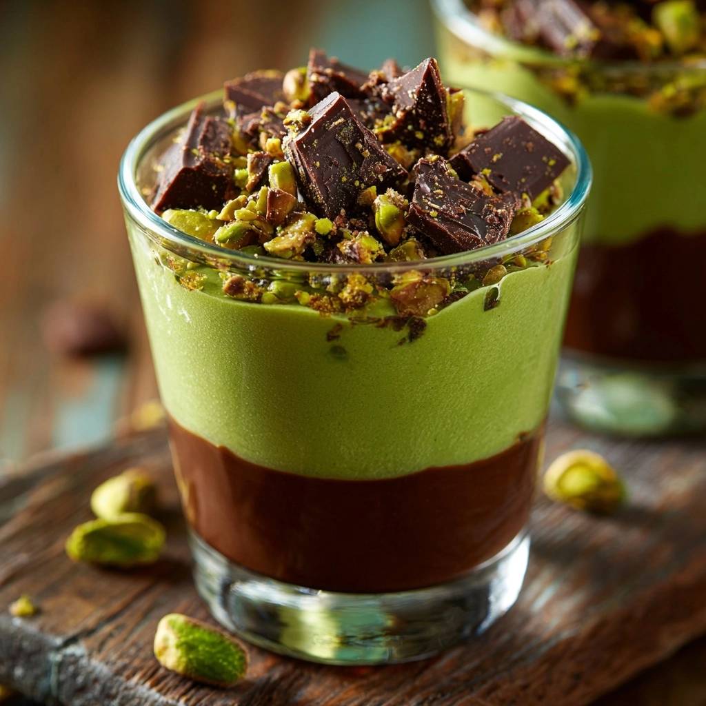 Stell dir vor, du löffelst die erste Schicht cremige Schokolade aus dem Glas. Sie schmilzt samtig auf der Zunge, intensiv und pur. Dann kommt die leichte Pistazien-Mousse, fluffig wie eine Wolke, mit diesem nussigen Aroma, das alles verzaubert.