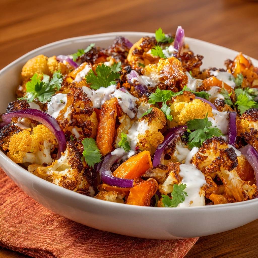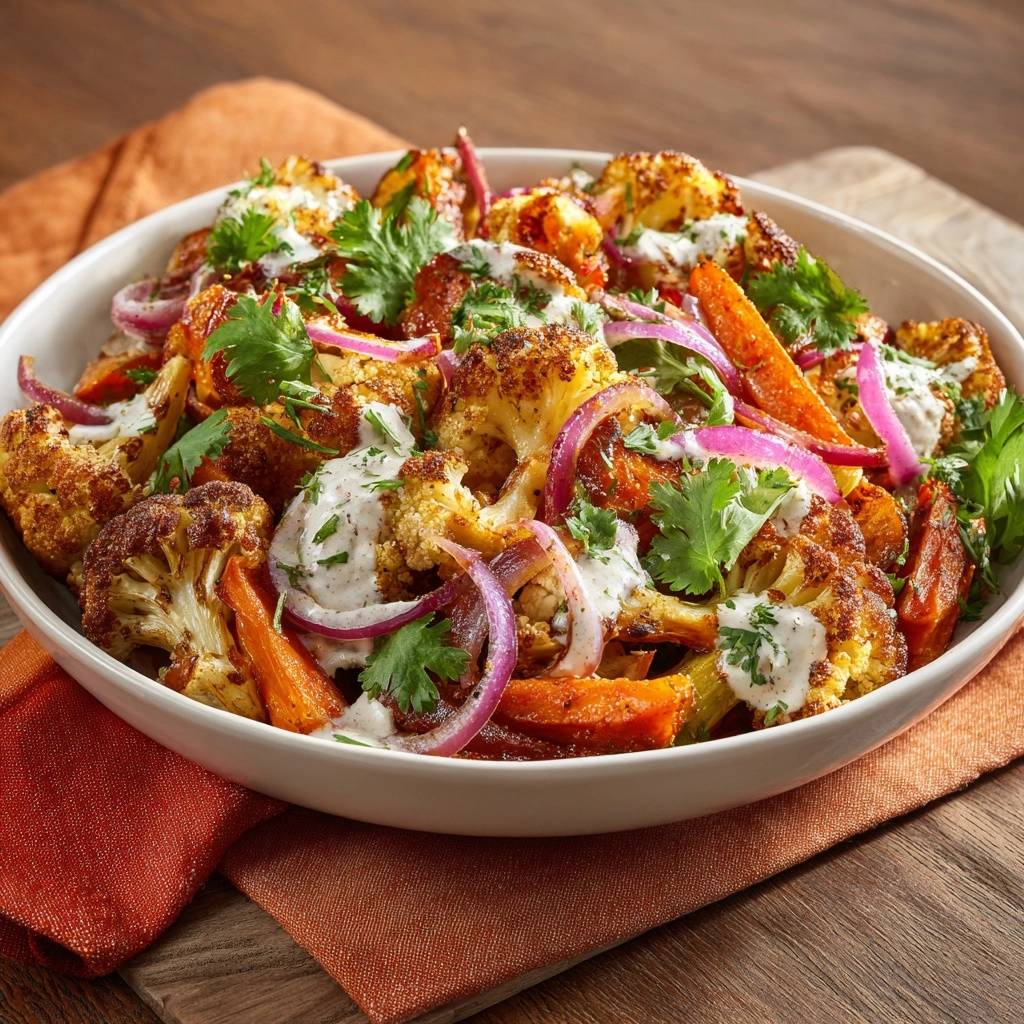 Röst-Blumenkohl mit Karotten und Joghurt-Dressing