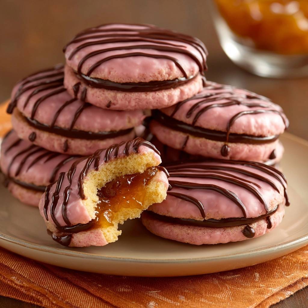 Rosa Marmeladen-Linzer mit Schoko-Streifen