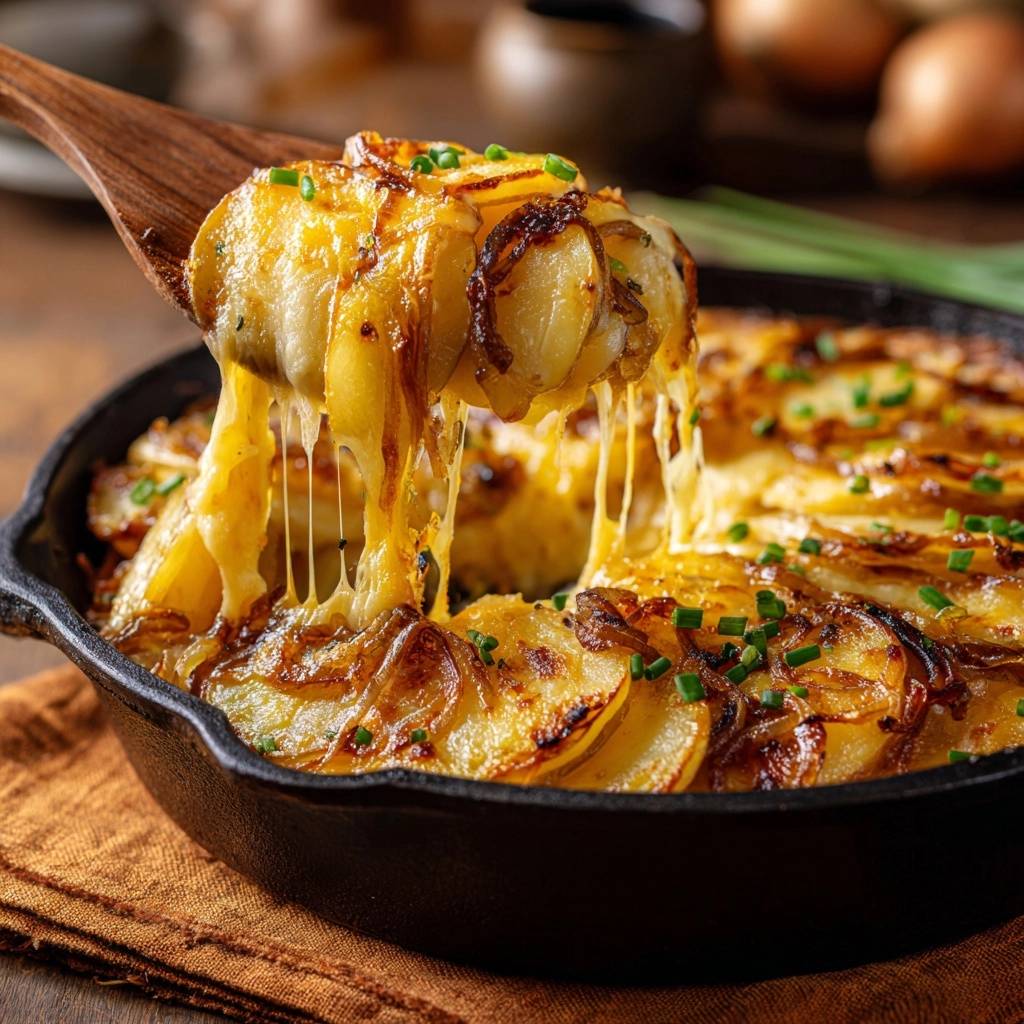 Rustikaler Pfannen-Kartoffelgratin mit Zwiebeln – cremig