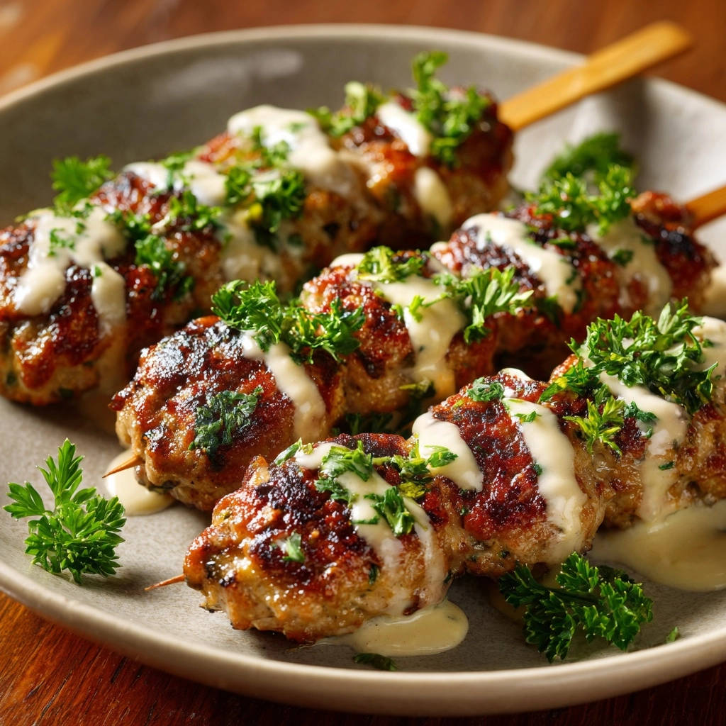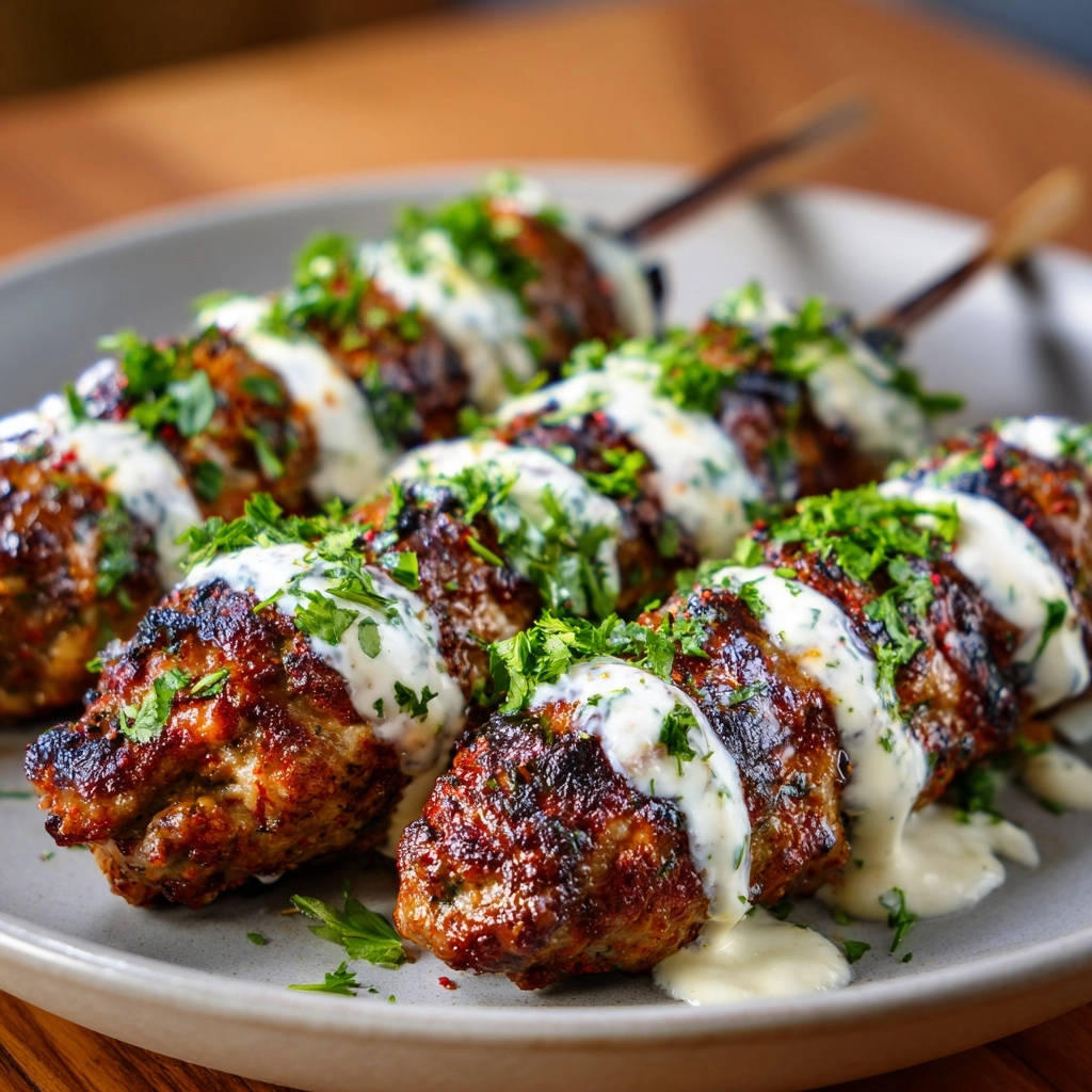 Saftige Hackfleisch-Spieße mit Kräuter-Joghurt: Perfektion in jedem Bissen