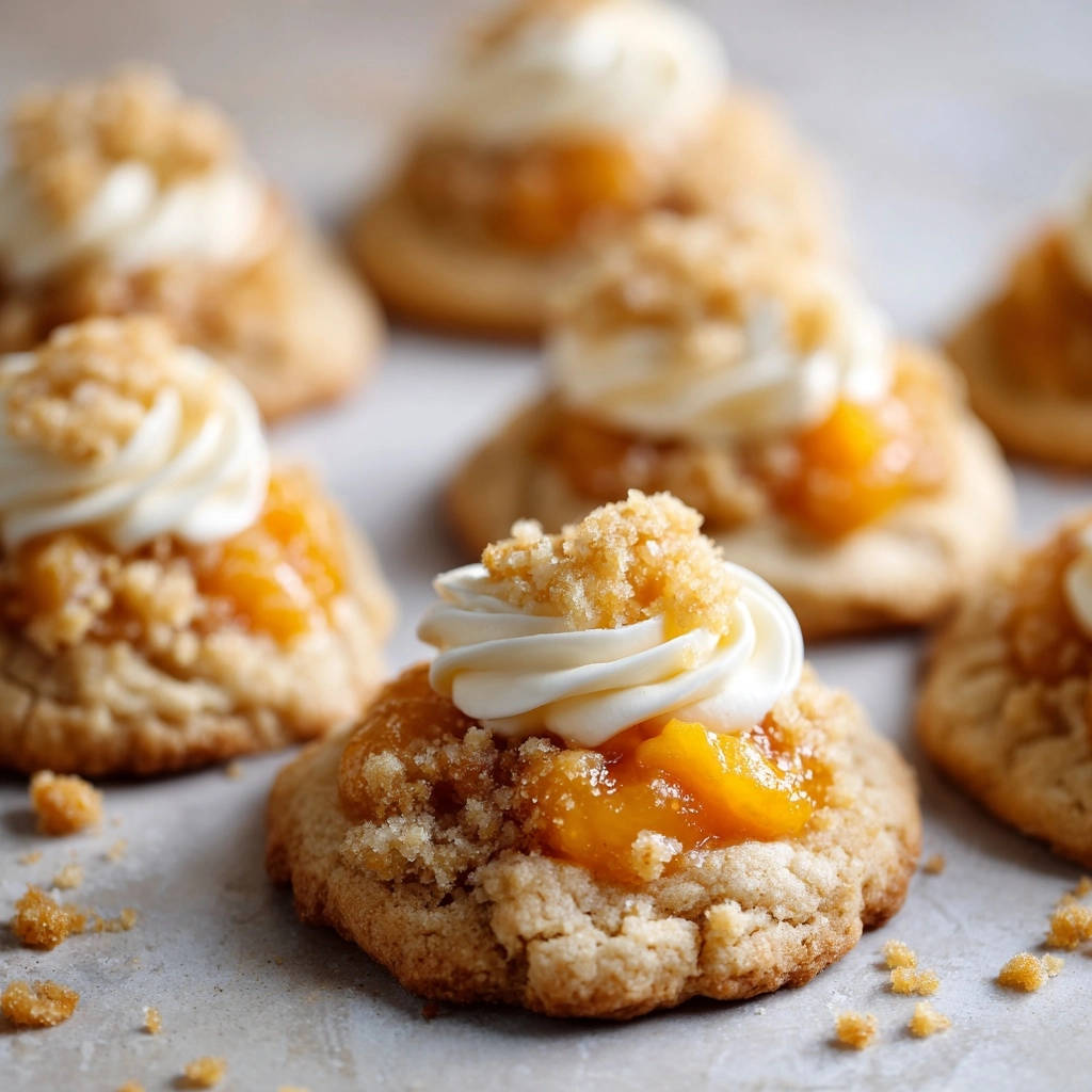 Saftige Pfirsich-Streusel-Kekse mit Frischkäse-Häubchen