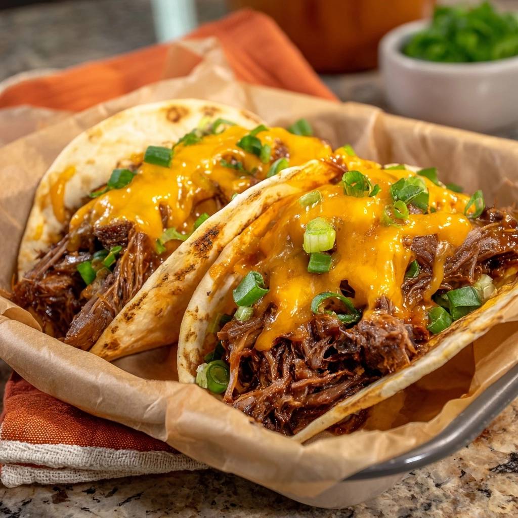 Saftige Pulled Beef Tacos mit Cheddar
