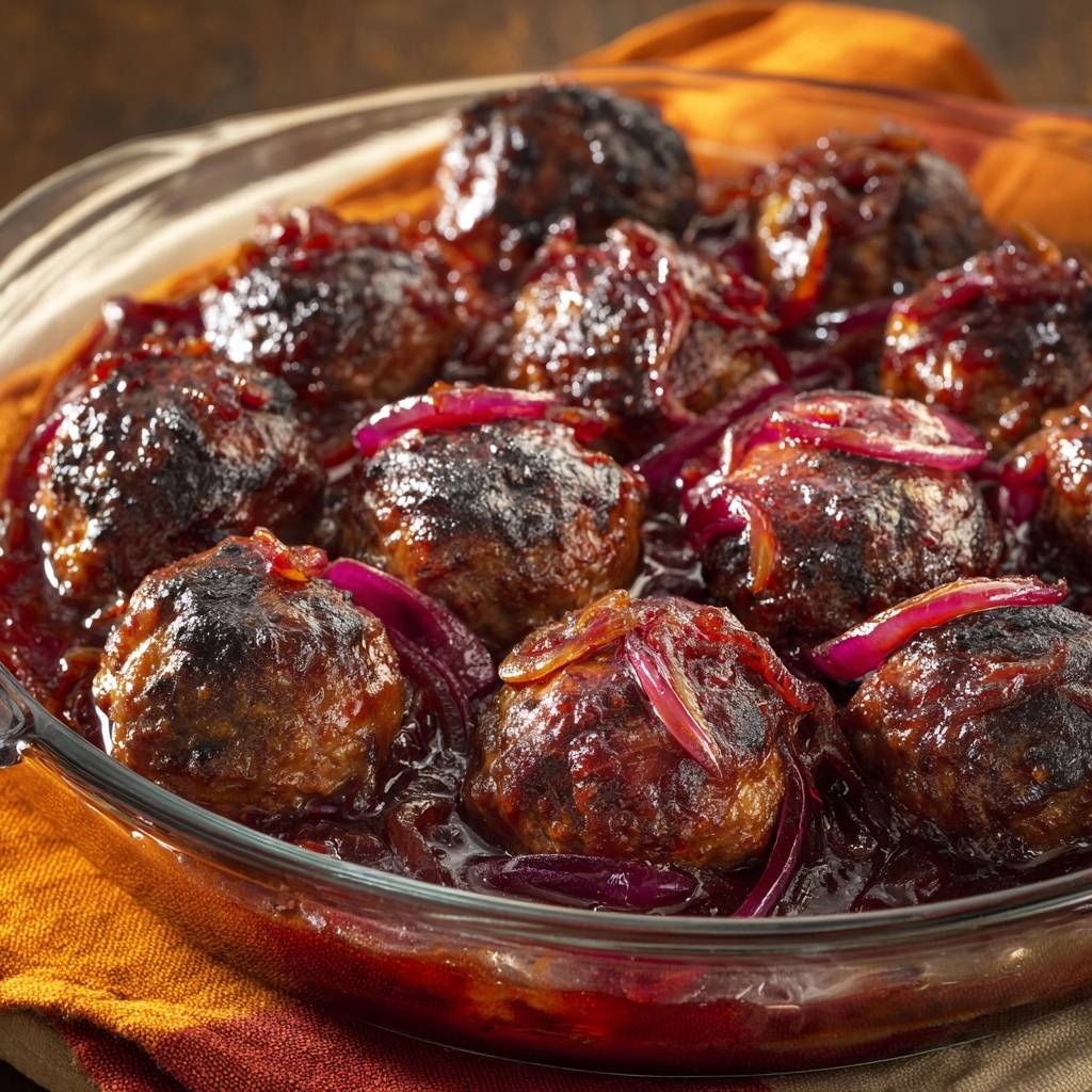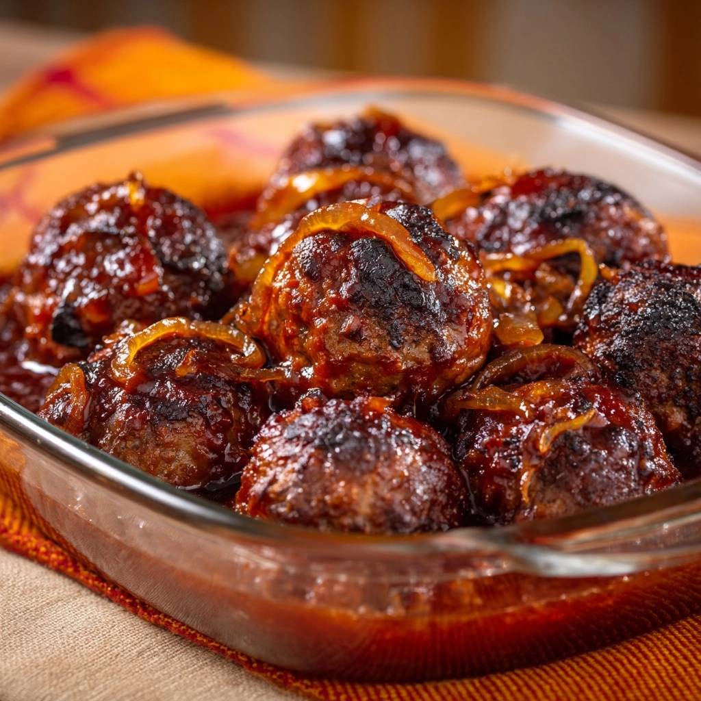 Saftige Rindfleischbällchen in karamellisierter Zwiebelsoße
