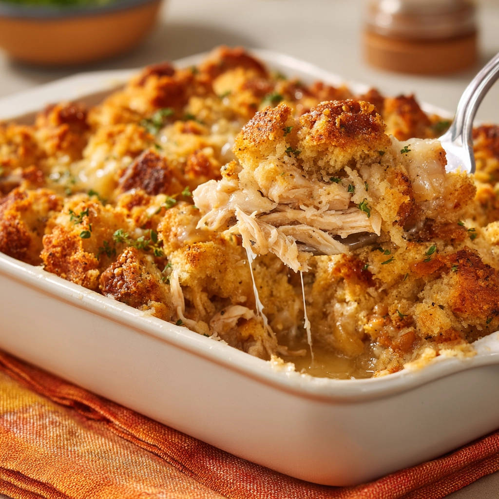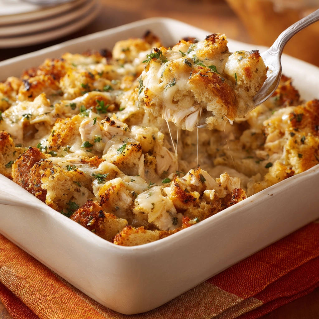 Genieße deinen hausgemachten Saftiger Hähnchen-Brot-Auflauf!