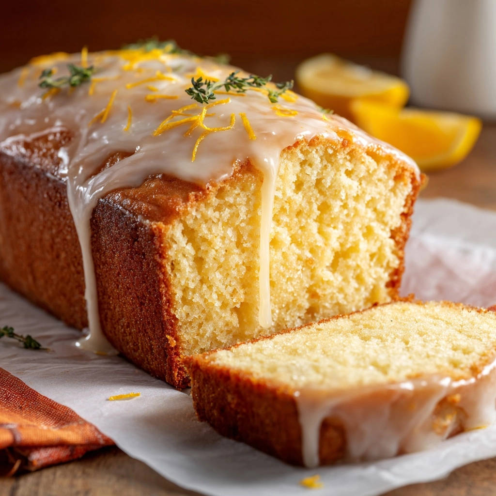 - Garniert den Kuchen mit frischen Zitronenzesten und einigen Thymianzweigen. Euer saftiger Zitronen-Kastenkuchen ist nun bereit, genossen zu werden!